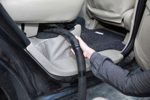 | membersihkan debu pada jok mobil dengan vacuum cleaner |
