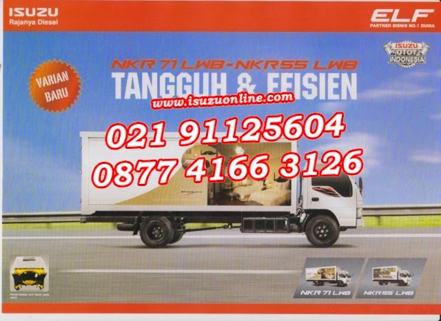 NKR 55 L : 100 PS/2800 cc/6 Roda : Power steering, reverse camera, tilt cabin, single CD, irit bahan bakar, volume bak/box luas, untuk light payload.