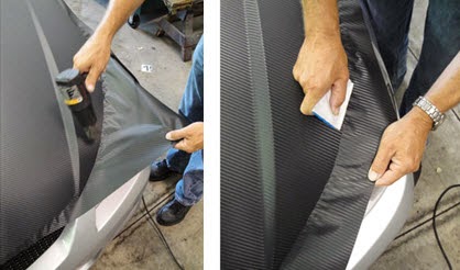 - Pertama-tama semprotkan alcohol dan air ke permukaan kap untuk menghilangkan segala kotoran yang menempel. Hal ini juga akan menambah daya rekat stiker carbon 3D